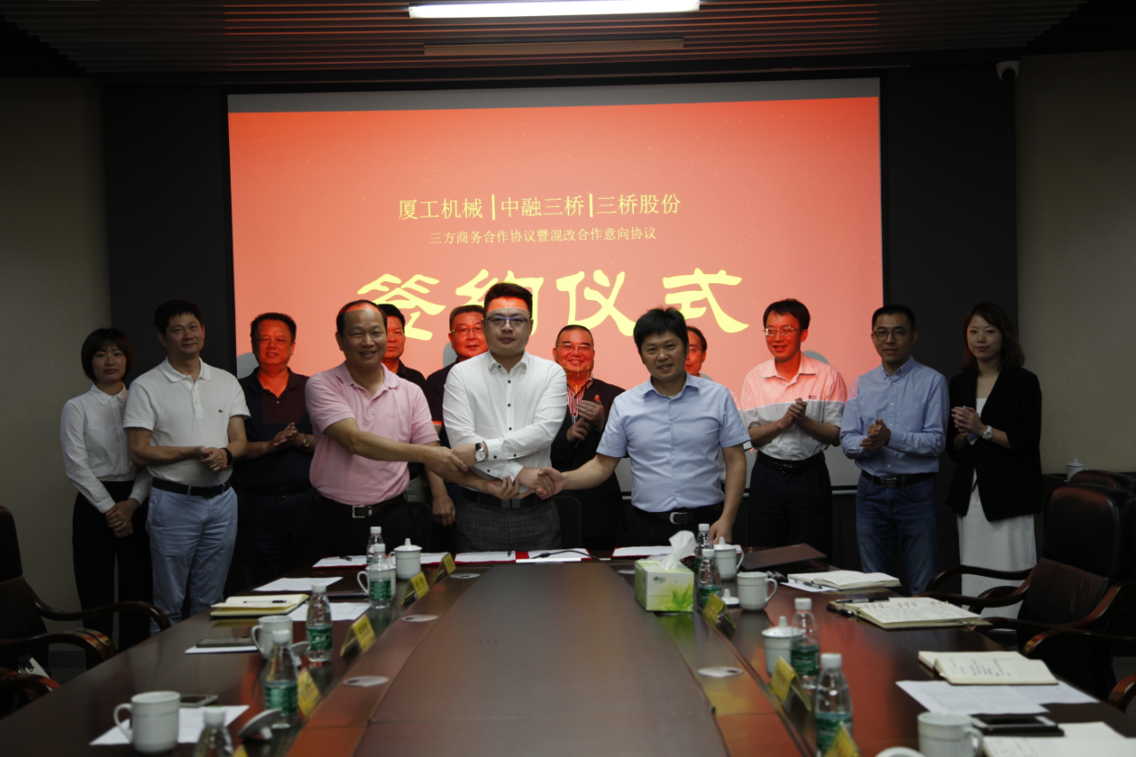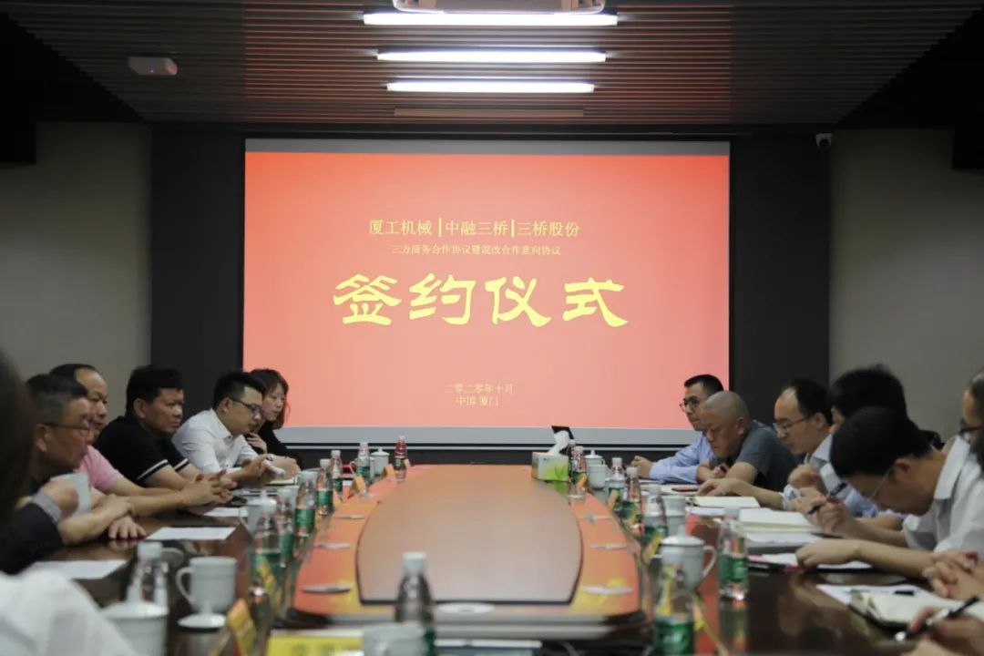 福建省機械工業聯合會會長許振明;廈工股份公司總裁林春明、副總裁兼財務總監李喜勇、總工程師黃鶴艇;中融三橋公司蔡報軍、董事長姜洋、總經理吳繼成出席簽約儀式。